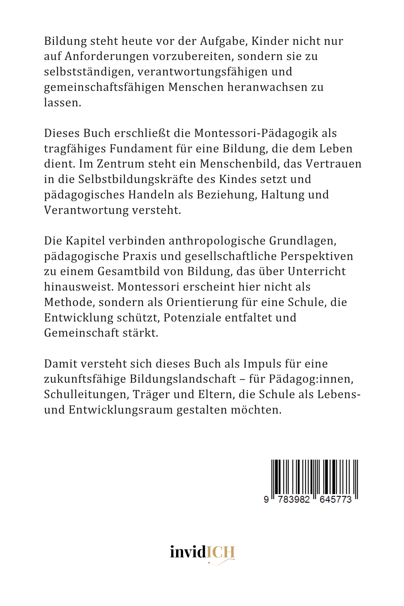 Dieses Buch erschließt die Montessori-Pädagogik als tragfähiges Fundament für eine Bildung, die dem Leben dient. Im Zentrum steht ein Menschenbild, das Vertrauen in die Selbstbildungskräfte des Kindes setzt und pädagogisches Handeln als Beziehung, Haltung und Verantwortung versteht.